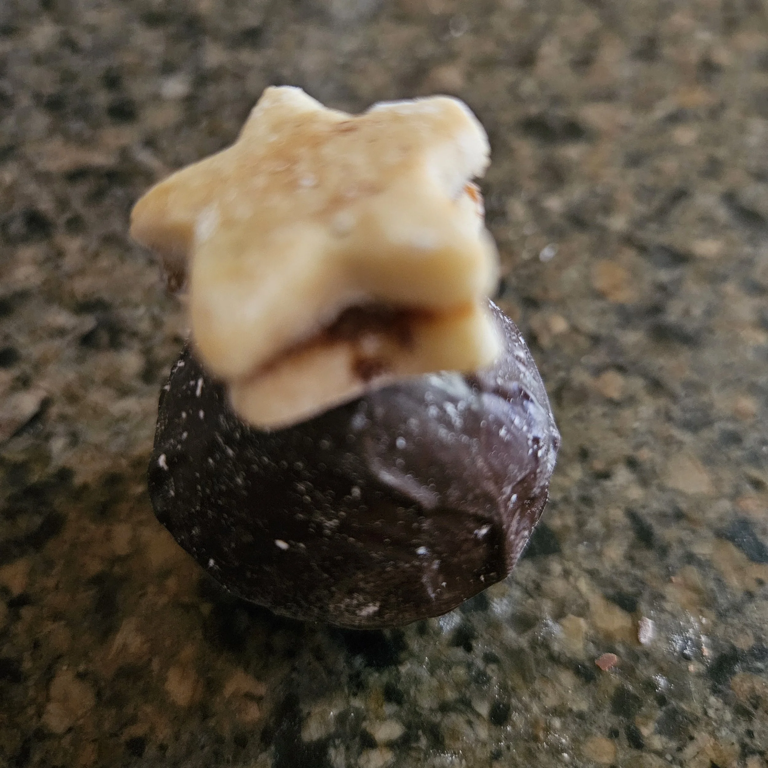 58% dark chocolate shell, 54% dark chocolate, fig, orange and Aperol filling with cuccidai star fig cookie